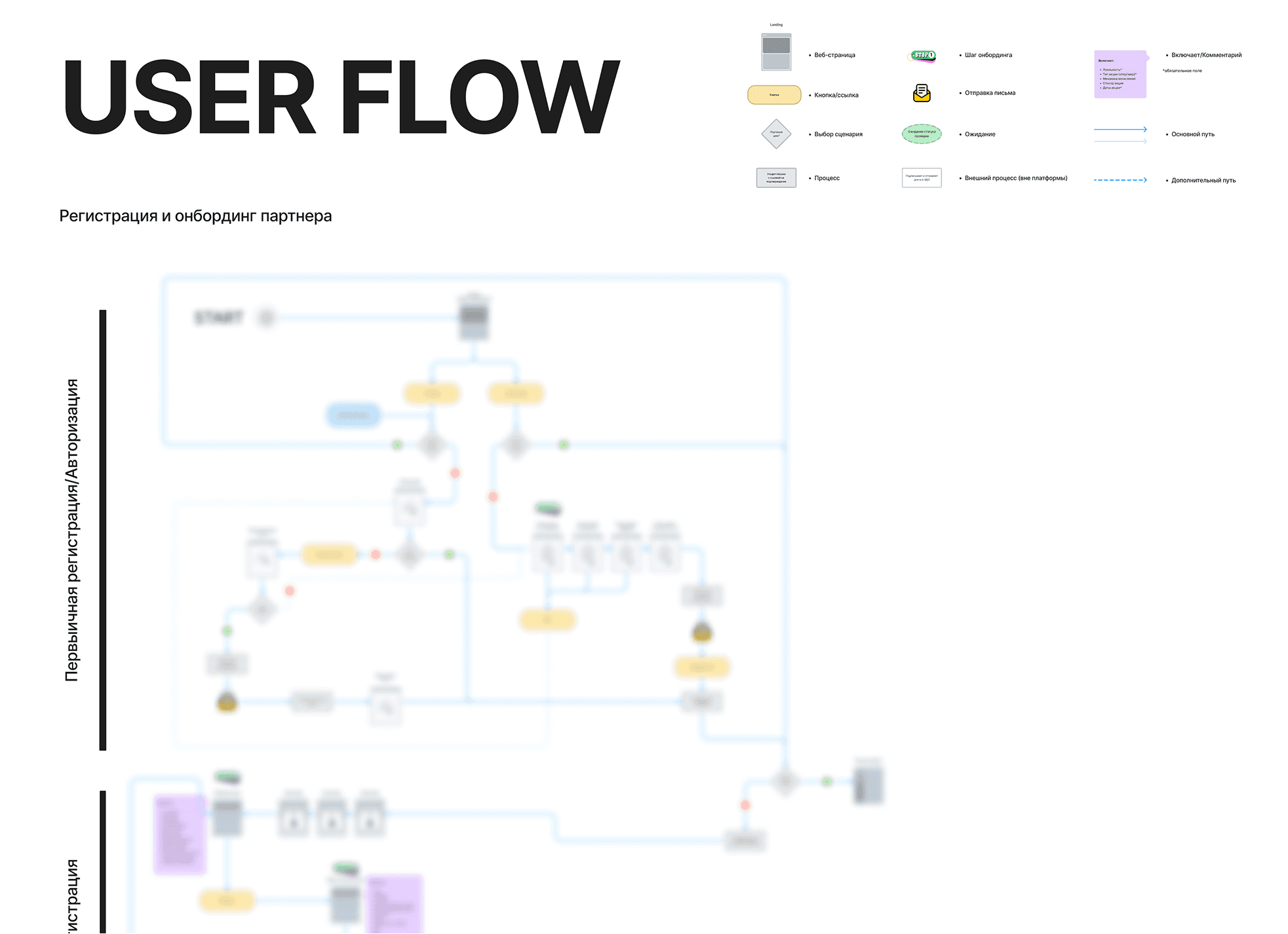 The platform was built and launched by Alfa-Bank’s product team without a UX designer, and we joined after it went live. Reviewed the most common partner questions collected by bank managers and used them to build a user journey map, highlighting the stages that required redesign and optimization.